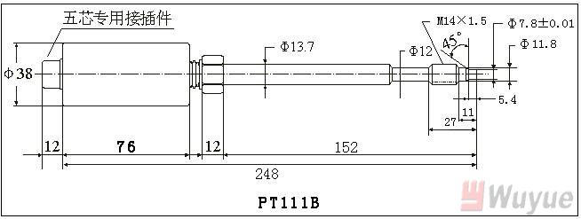 5、選型舉例:PT124B-20MPa-M14-152/460-2/5單功能軟管型變送器20MPa,M14×1.5。直桿長152mm,軟管長460mm,五芯接插件,4-20m A輸出。
