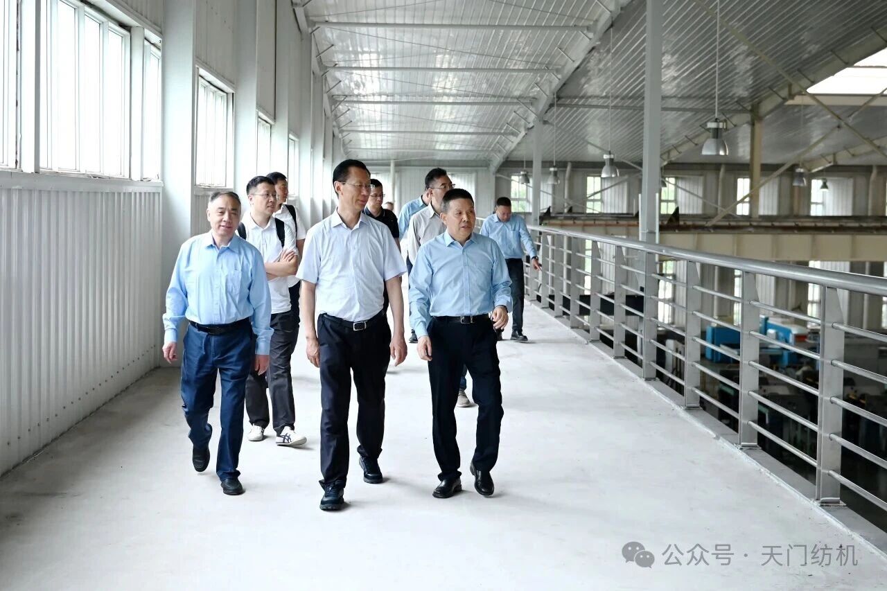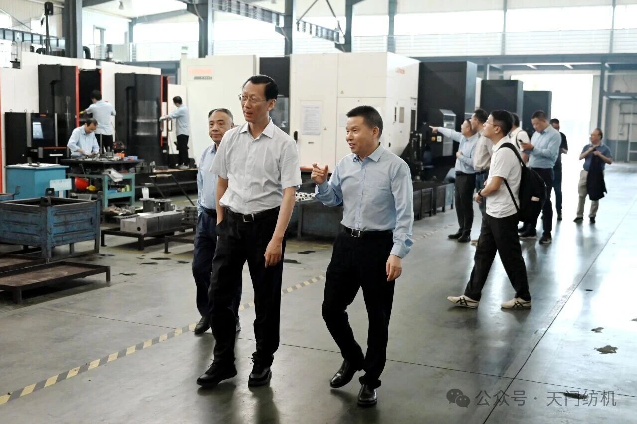 潘雪平董事長一行在沈方勇董事長的陪同下,深入車間一線,實地感受了天門紡機繁忙的生產(chǎn)現(xiàn)場以及火熱的“智慧工廠”項目施工現(xiàn)場,了解到了公司在智能化改造和數(shù)字化轉(zhuǎn)型方面的最新成果。沈董事長講解了公司產(chǎn)品的特點、特色,并就TM系列并條機的市場行情進(jìn)行了重點分析和介紹。